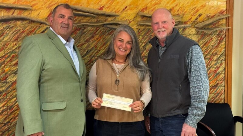 Fleet Advantage Senior Vice President, Bill Ten Eyck (left) presents a check for $5,000 to Chuck Cederberg, AEI Board of Directors (right) and Shelley Raposa, AEI Director of Development (center).