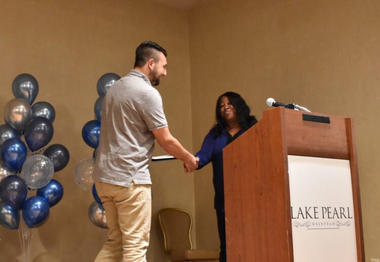 "I'm happy to announce that the 'Excellence in Direct Care Service' Award in our Family Supports program goes to DUWARD SAYGBE!